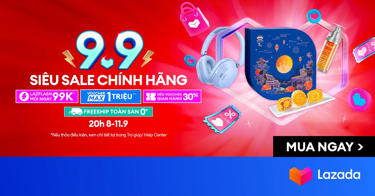 Lazada 9.9: Voucher 100K đơn 200K, FreeShip Toàn Sàn 0Đ